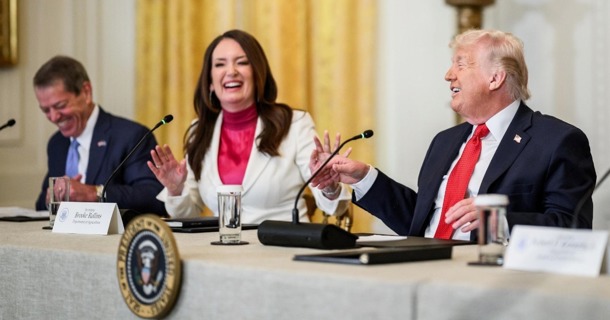“Mr. President, a gigantic thank you for your incredible leadership,” Gov Pillen said during the roundtable. “Your courage gives me more courage to say it the way it is.”